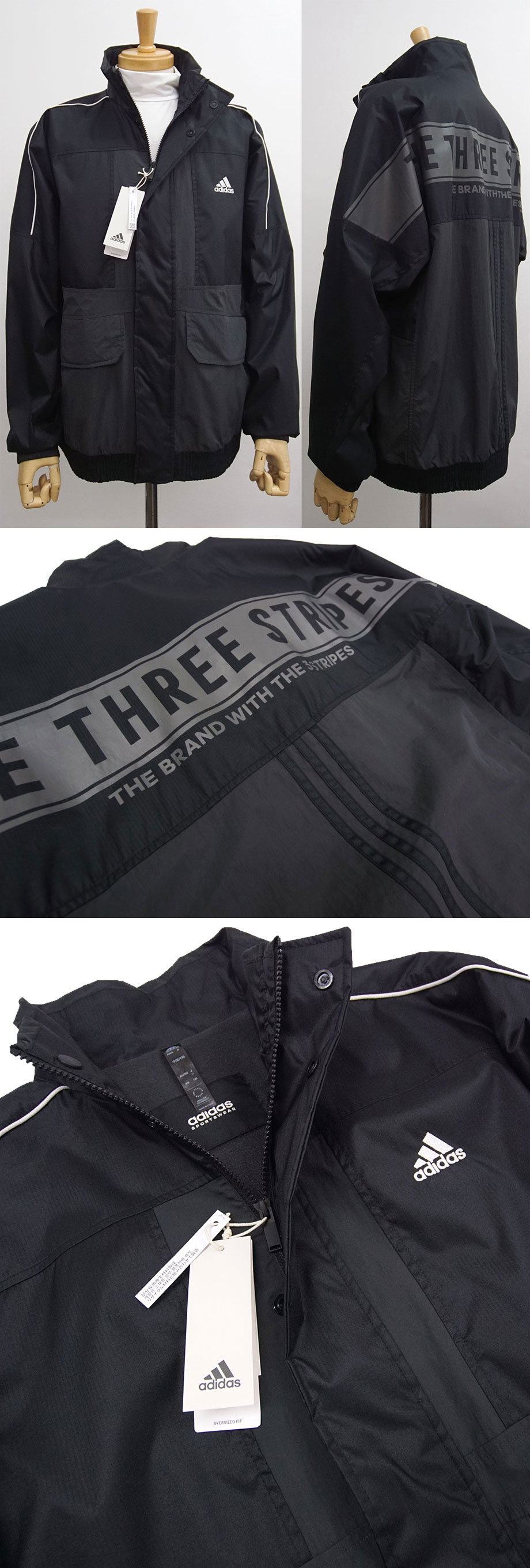 国内正規品(アディダスジャパン株式会社)。背面の「THE THREE STRIPES(スリーストライプス)」ロゴでとても人気の高い品です。胴回りにゆったりとゆとりある「オーバーサイズフィット(ワイドシルエット)」。動きをさまたげず、ゆるく羽織れるリラックスした着心地が魅力です。ウエスト周りがご心配な方や、がっしりとした体型の方には特におすすめ。痩せ型の方であればトレンド感ある適度にルーズな着こなしが楽しめます。軽量でも目の詰まった高機能リップストップ素材は風を通さず、裏起毛もあり、しっかりと暖か。秋や春の軽快なアウターとして最適。冬場は重ね着していただいて。ロングシーズン活躍します。汎用性が高くゴルフ等の各種スポーツ、日常のカジュアル、アウトドア…シーンを選ばず、お一つあれば重宝まちがいありません。ウォッシャブル ご家庭の洗濯機で洗えます。とても人気が高く、黒色は早期に完売となった品で希少な品かと思います。お探しになってる方も多いのではないでしょうか。どうぞお見逃し無く。(国内の大手スポーツショップやゴルフショップ、百貨店等で販売される国内正規品となります。)