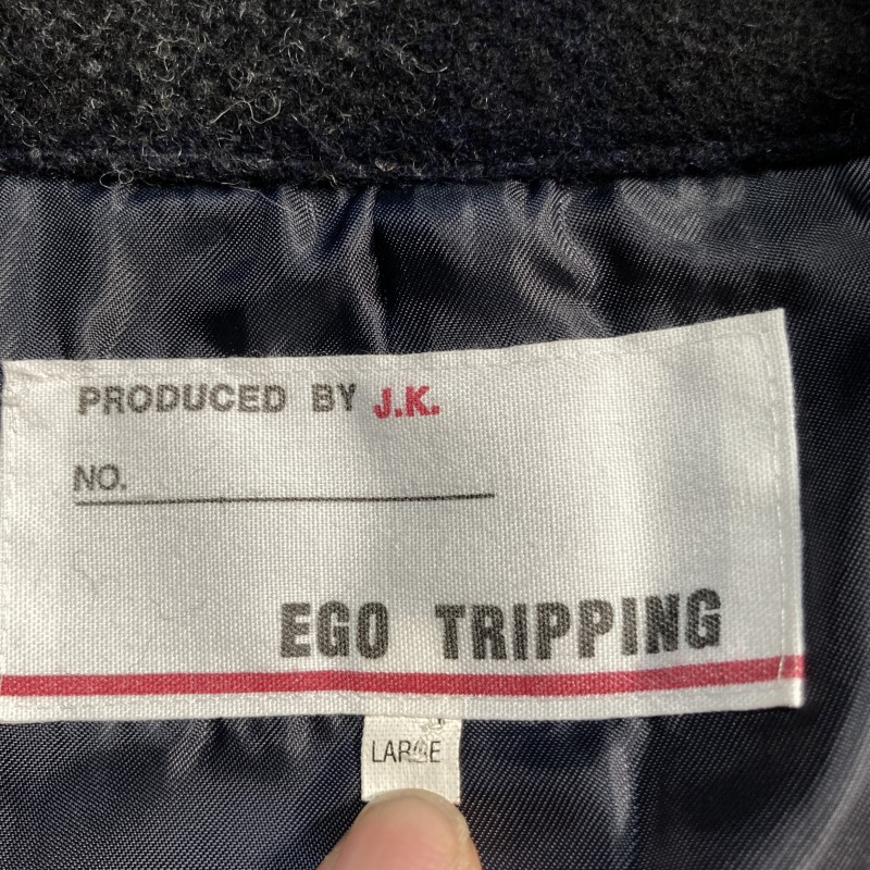 EGO TRIPPING★美ライン&クール★オンブレチェック ベルト付Pコート メルトン 襟&袖ストラップ トレンチ 黒灰 L エゴトリッピング ロック 收藏