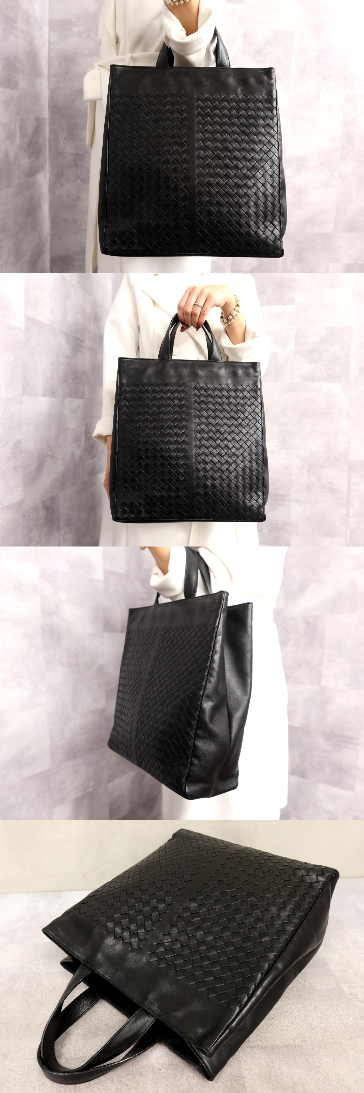 ●超美品●BOTTEGA VENETA ボッテガ ヴェネタ●イントレチャート●カーフ レザー 本革●ハンド バッグ●黒●腕掛け●B5 書類 収納●Js63046 收藏