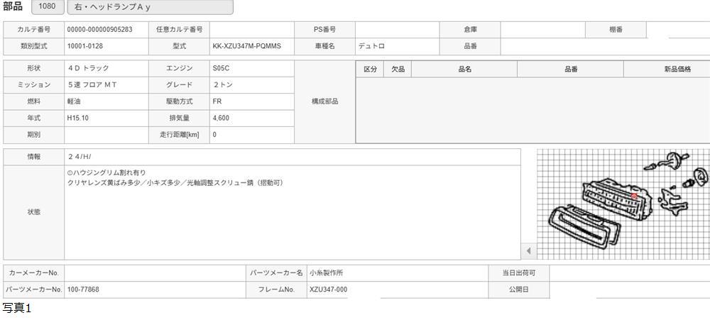 H15年 XZU347M デュトロ 右 ヘッドライト コイト 100-77868 /送料 SS/905283 收藏