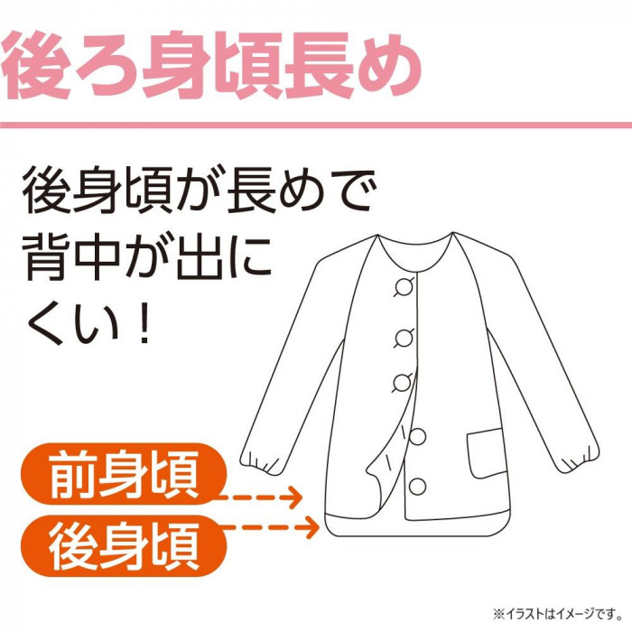 | ホック仕様で着替え簡単。後ろ身頃長めで安心。動きやすいラグラン袖。手口・足口はゴム入りで交換可能。ウエスト調節ゴム付き。なめらかでやわらかな肌ざわり。便利な名前書きスペース付き。 ※柄は若干変更になる場合もございます。 |