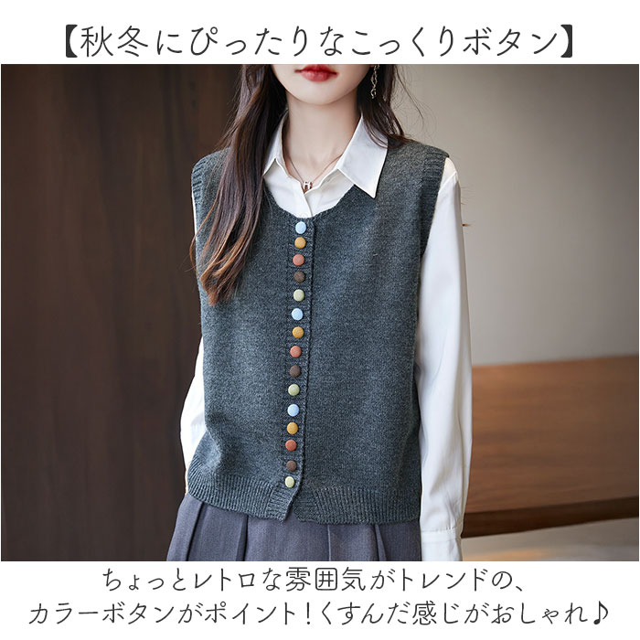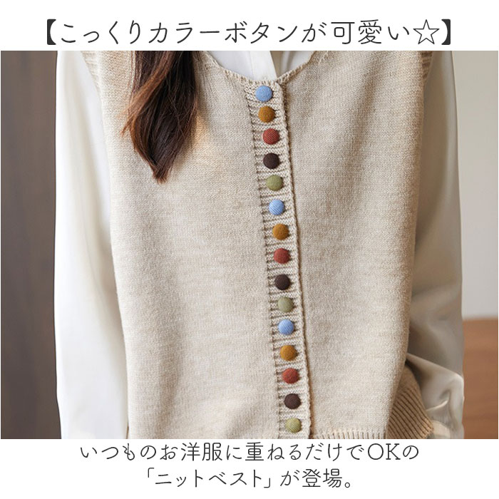 | 商品説明 | ・・【こっくりカラーボタンが可愛い☆】 ・いつものお洋服に重ねるだけでOKの「ニットベスト」が登場。 ・【重ねるだけでオシャレコーデが完成】 ・シンプルなトップスやワンピに重ねるだけで、上級者の着こなしが叶うアイテム。 ・【秋冬にぴったりなこっくりボタン】 ・ちょっとレトロな雰囲気がトレンドの、カラーボタンがポイント!くすんだ感じがおしゃれ♪ ・【しっとりあたたかな生地】 ・チクチクしにくいけどしっかり保温してくれる、あったかニット素材を採用。 ・【大人ナチュラルコーデに♪】 ・落ち着きのあるカラーだから着回ししやすい!着るだけでナチュラルな印象に仕上がる。 |