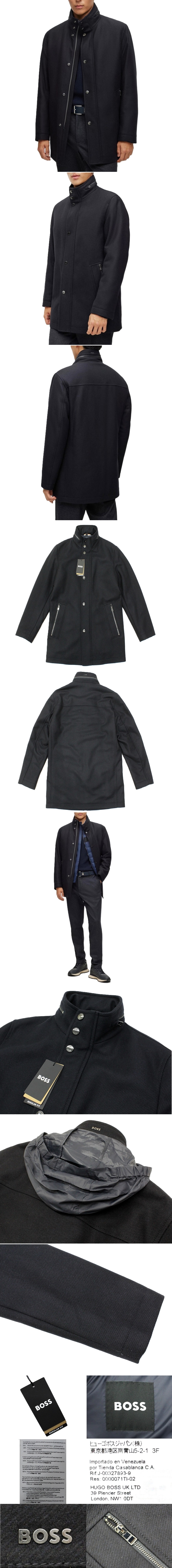 21万新品◆54=XL◆BOSS ヒューゴボス ウール混レジメンタルストライプ柄フード内蔵コートダークブルー濃紺 1円 收藏