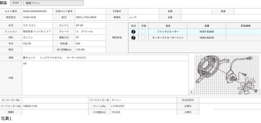 H22年 L175S ムーヴ 電動ファン モーターのみOK/送料 ミニ/905302 收藏
