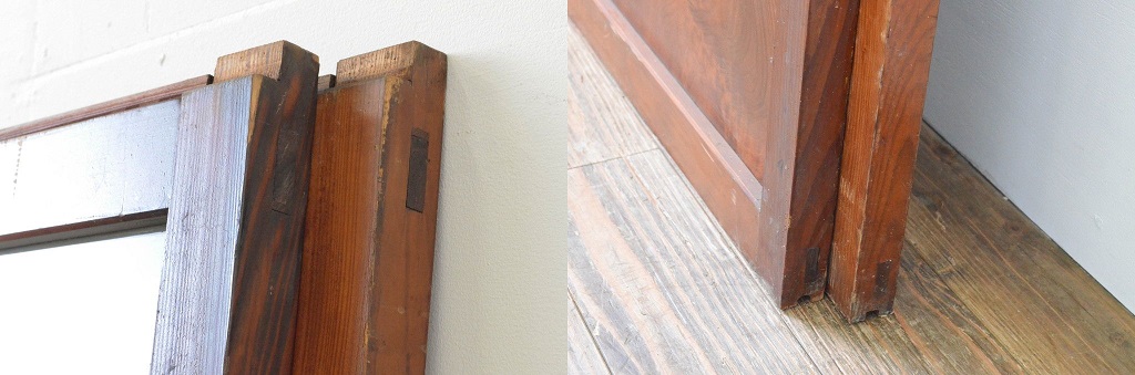 R-065997 アンティーク建具 昭和初期 上品な色合いとくっきりした木目が目を引くガラス戸2枚セット 引き戸 (R-065997) 收藏