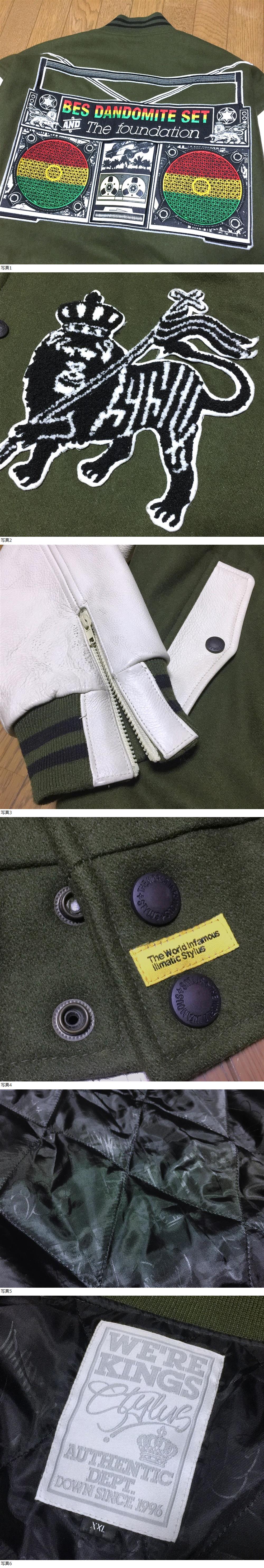 | 【ブランド】 STYLUS スタイラス 渋谷神宮前にあるカリスマショップ”GROPE IN THE DARK”のオリジナルブランド『STILLAS(スタイラス・STYLUS)』。“NO CONCEPT”を基に、音楽を取り入れたトレンドを作り上げている。餓鬼レンジャー等の”HIP HOP””R&B”アーティストとコラボも積極的に行っています。 【デザイン・モデル】 ラスタデザイン ワッペン 牛革 レザー x メルトン 中綿 袖革 スタジャン アワードジャケット 【生産】 【詳細・コメント】 STYLUS スタイラス 袖革スタジャンになります!袖には上質な牛革レザー・身頃はメルトンウールを使用、豪華なワッペンが施された存在感抜群の逸品。カラーはカーキ×ホワイト、袖口ジップ付き、裏地はキルティングの中綿入りで防寒性もあり、拘りの仕上がりです。 正規品です。 【サイズ】 表記: XXL ※実寸を参考にして下さい。 平置実寸:身幅70㎝ 着丈80cm 肩幅64㎝ 袖丈64㎝ ※多少の誤差はご了承ください。 【カラー・パターン】 カーキ系 × ホワイト系 ※ご覧になられるモニターや、デジカメの撮影具合によって色味が異なる場合がございますのであらかじめご了承ください。 【品質】 表地:ウール70% レーヨン30% レザー部:牛革 レザー 裏地:ポリエステル100% 中綿:ポリエステル系 【コンディション】 USED 中古品 です。背面に傷破れ、レザーにシワ・薄汚れ(画像参照)など使用感ございますが、それ以外に目立ったダメージは無くまだまだ着用いただけます。※写真参考に判断して下さい。ユーズドアイテムにご理解ある方のみご入札お願い致します 。 | |||