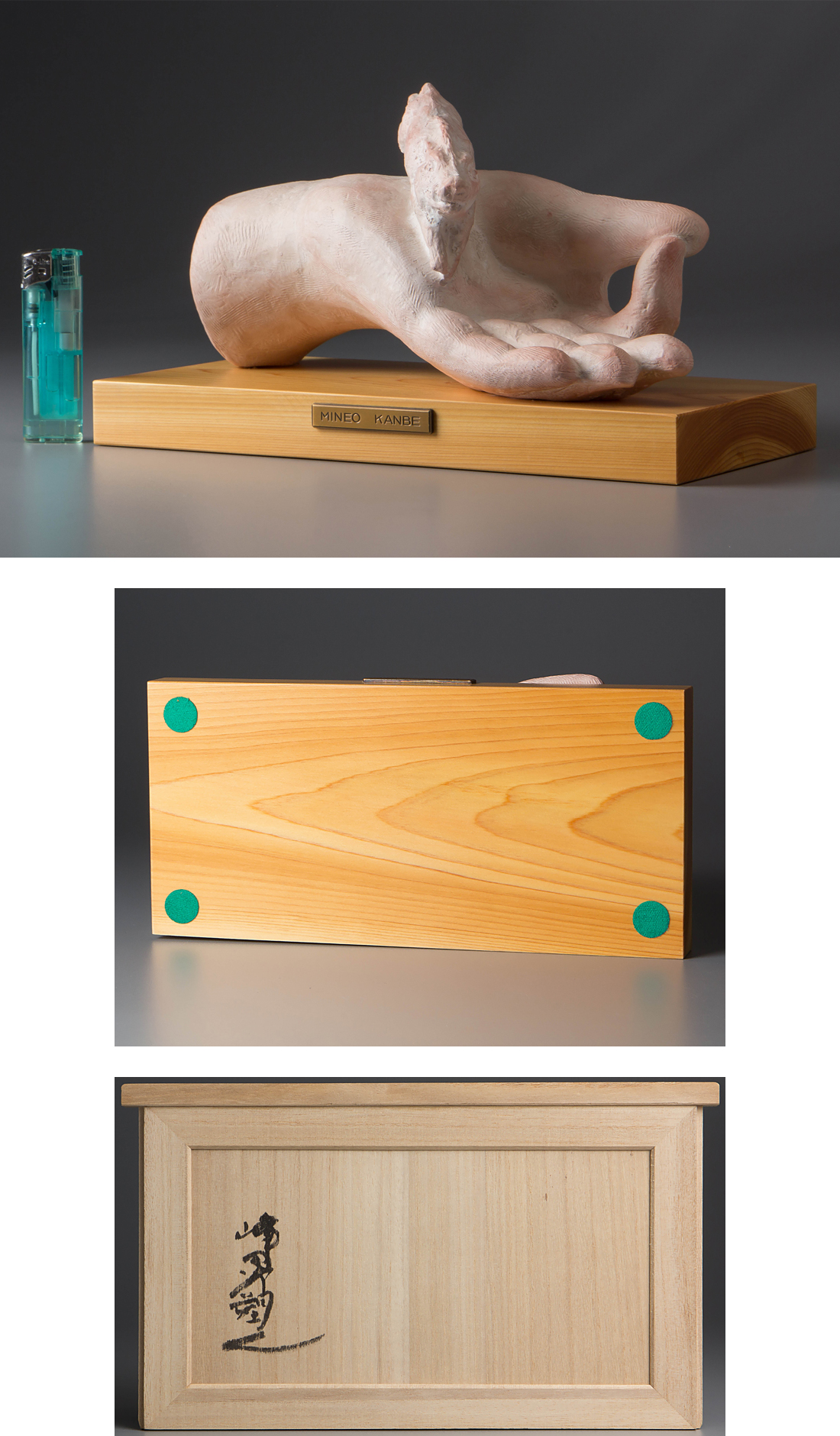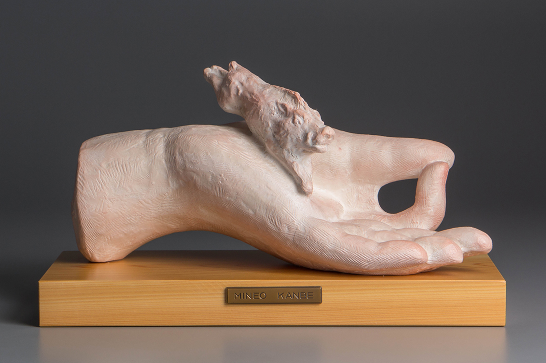 【1on1】真作 神戸峰男 作 『加彩陶 与願』 共布 共箱 ■ 師:清水多嘉示 木下繁 日展理事 日本彫刻会理事委員長 日本芸術院会員 收藏