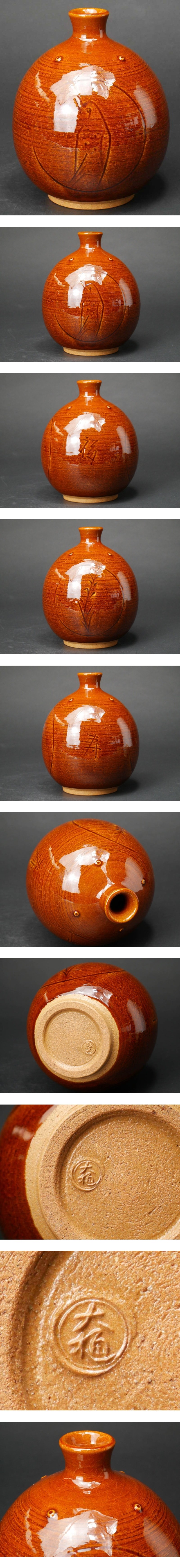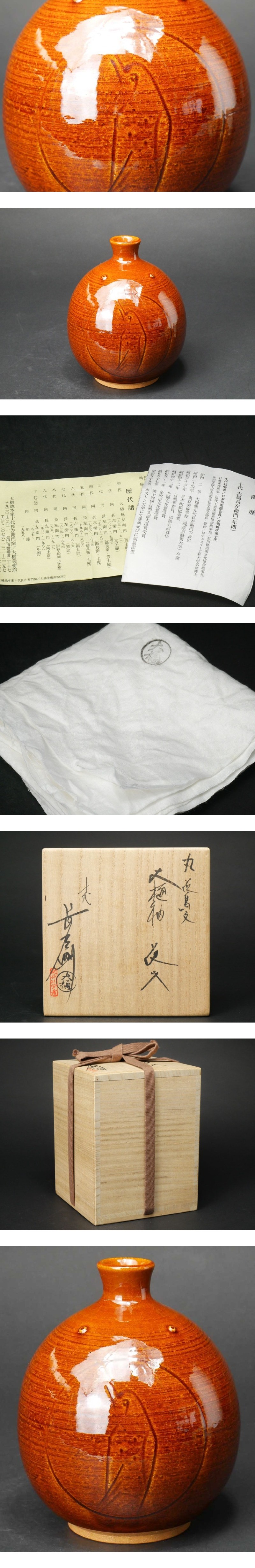 【 幸 即決祭 】『十代大樋長左衛門』造 丸花鳥文 大樋釉 花入 共箱 当店保証 茶道具 K 收藏