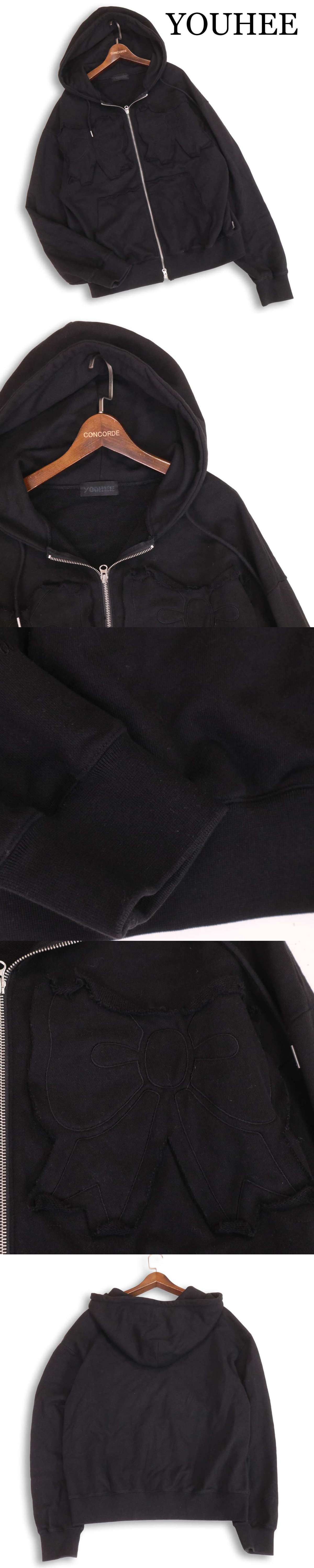 YOUHEE ユヒ 通年 RIBBON HOOD ZIP-UP BLACK♪ リボン フーディー ジップ オーバーサイズ パーカー Sz.F レディース 黒 收藏