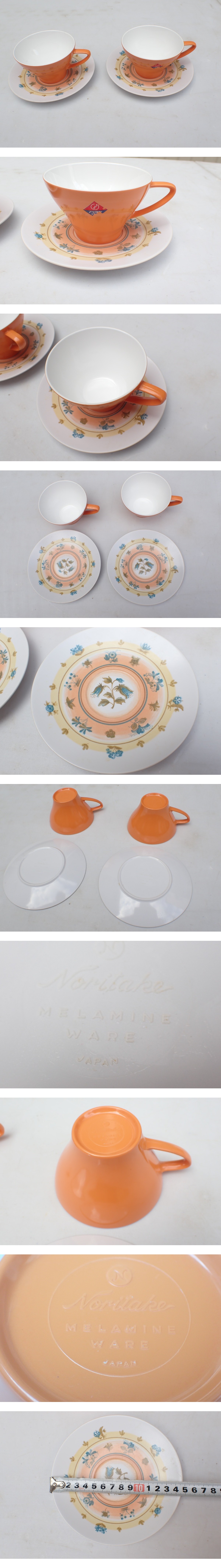 84460 Noritake MELAMINE WARE ノリタケ メラミンウェア カップ&ソーサー 碗皿 2客SET 花柄 昭和レトロ オールド ビンテージ 收藏
