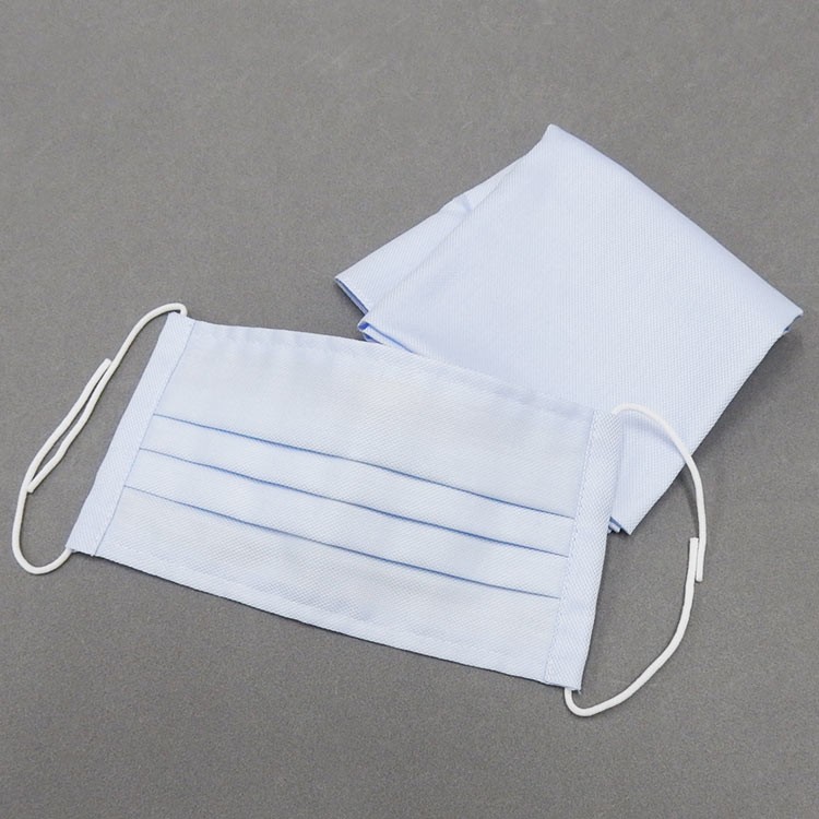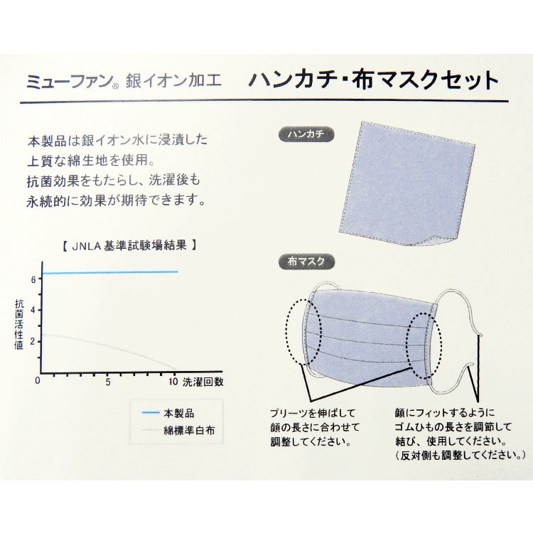 布マスク&ハンカチセット 【ミューハン】銀イオン抗菌加工 アクアブルー/無地 綿100% 日本製 男性用 MSK-H01 收藏