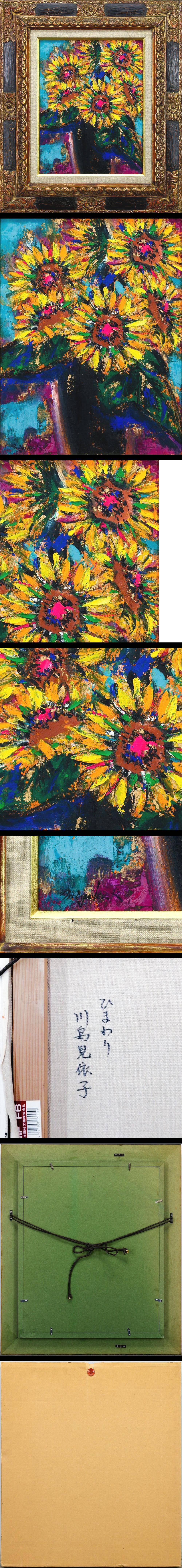 【真作】【WISH】川島見依子「ひまわり」油彩 6号 ◆情熱の色彩美・躍動の向日葵名画 〇夭折女流巨匠 国会議事堂蔵 #26022275 收藏