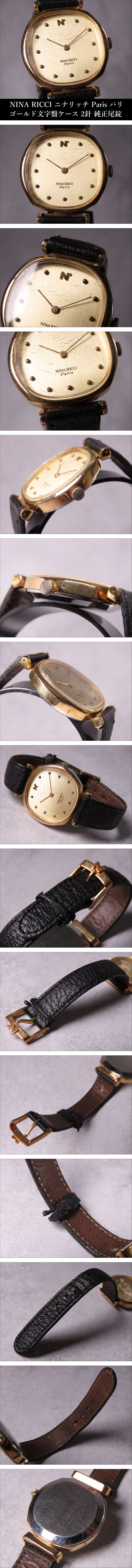 【ONE'S】NINA RICCI ニナリッチ Paris パリ ゴールド文字盤ケース 2針 純正尾錠 レディース腕時計 動作品