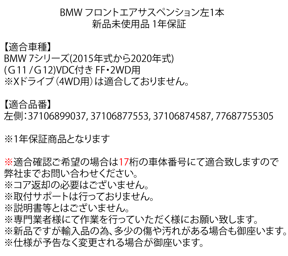 商品名 BMW 7シリーズ G11 G12 右 前 フロント エアサスペンション VDC 2WD 37106899037 37106899038 エアサス