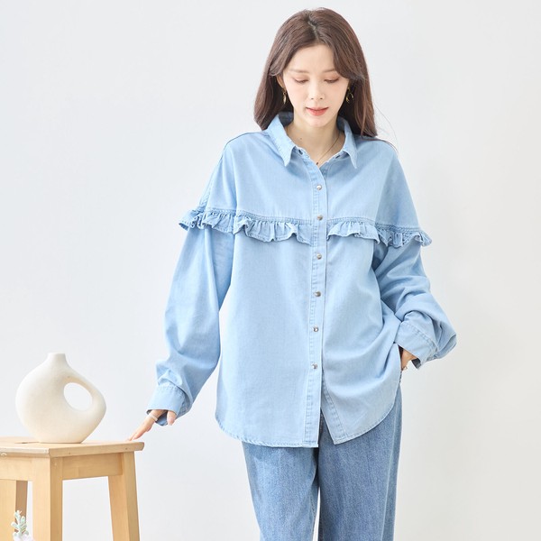 デニムのカジュアルさに、フリルの甘さを。一枚で着映える万能シャツ。