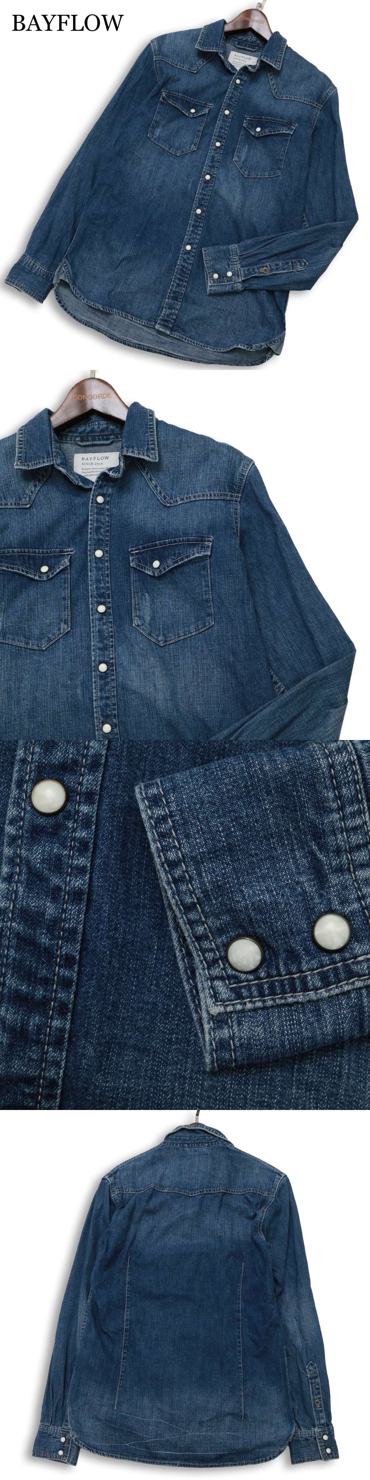 BAYFLOW ベイフロー 通年 USED加工★ 長袖 ウエスタン デニム シャツ Sz.2 メンズ 收藏