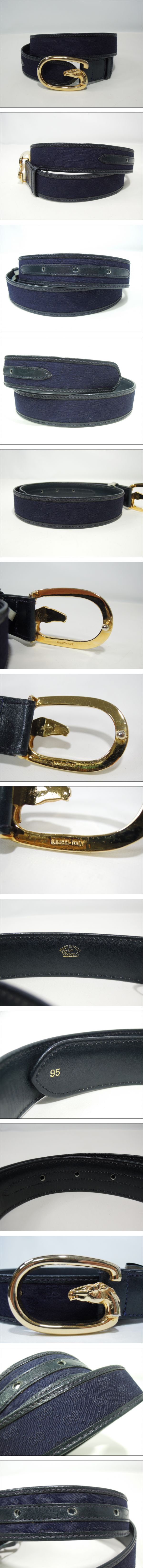 GUCCI グッチ オールドグッチ 馬 ホース Gロゴ ゴールドバックル ベルト レザートリミング シャドーGG柄 ネイビー 幅3cm 全長95cm