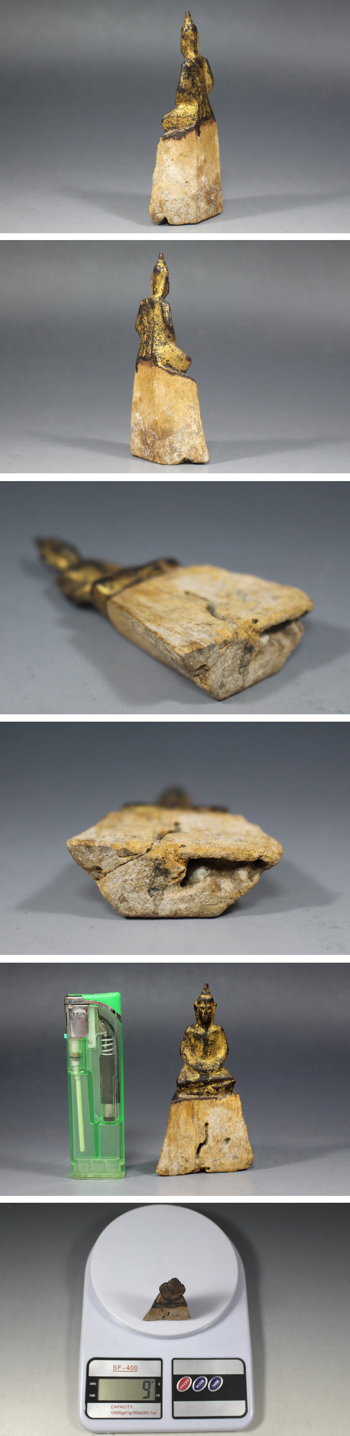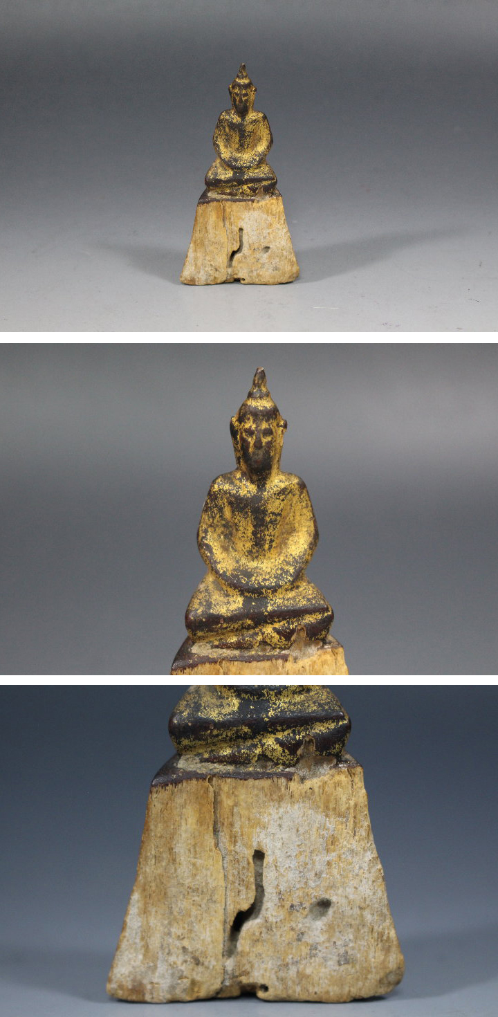サイズ:高8.3cm 東南アジア タイ北部19世紀頃のラーンナー木彫仏です。 100年以上前の作だそうです。 手のひらにのる大きさの小さな仏です。 古いモノとしては状態は非常にいいと思います。 タイ北部の美術はラーンナー美術(文化・様式)と言われています。 ラーンナーとはチェンマイを中心に栄えたタイ北部にあった昔の王朝です。 タイ北部やラオスでは昔からこの様な木彫仏が作られたそうです。 洞窟やお寺の境内に大切に奉納されて信仰の対象となっていました。 全体に丁寧な漆の金箔にが施された美しい木彫仏です。 状態は大変良好で特に目立つ疵や補修等はありません。 小ぶりで可愛らしく素朴な姿の木彫仏像です。 ※ 最後の画像は同時出品仏との参考画像です。 写真をご覧の上ご入札宜しくお願い致します。 | |