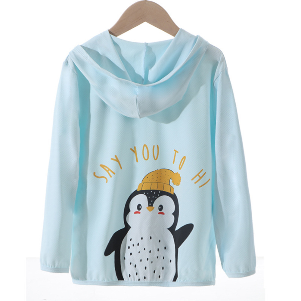 ☆ ペンギン×ライトブルー ☆ 110cm ☆ キッズ UVカット パーカー アニマル 速乾 薄手 ykmd5151 uvカット パーカー キッズ 收藏