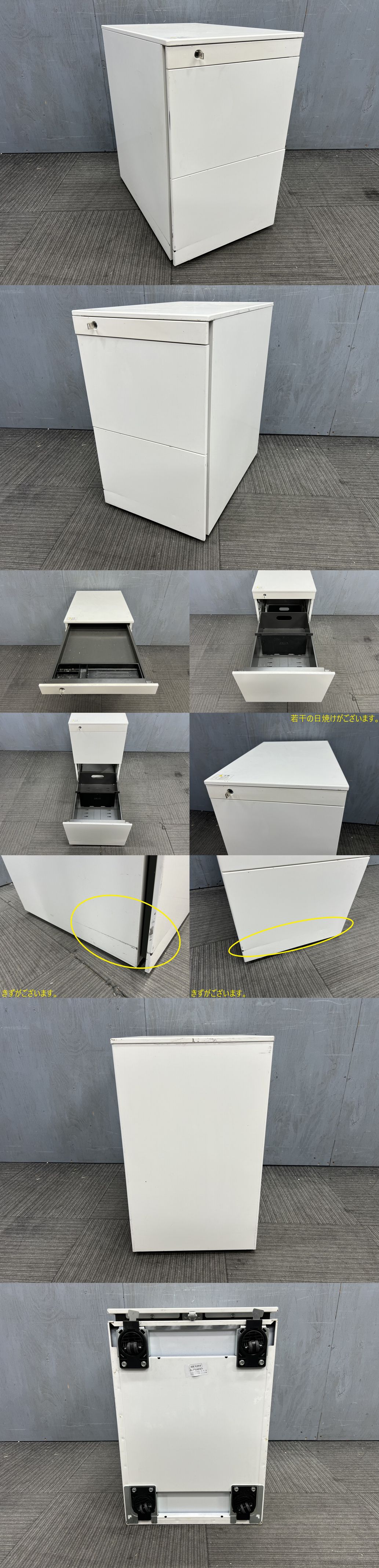 ◆管3075◆自社便対応地域あり◆オカムラ製◆3段デスクワゴン 鍵付き◆幅390mm 高645mm ハイタイプ◆白 ホワイト系 收藏