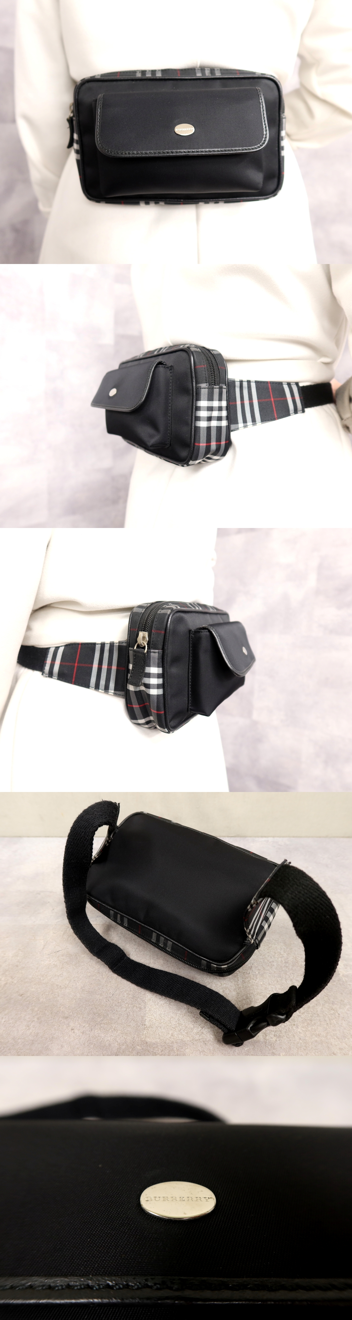 ●超美品●BURBERRY バーバリー●ロゴ金具●ノバチェック●ナイロン●ウエスト ポーチ●黒 白 赤●シルバー金具●収納 かばん●Js66379 收藏