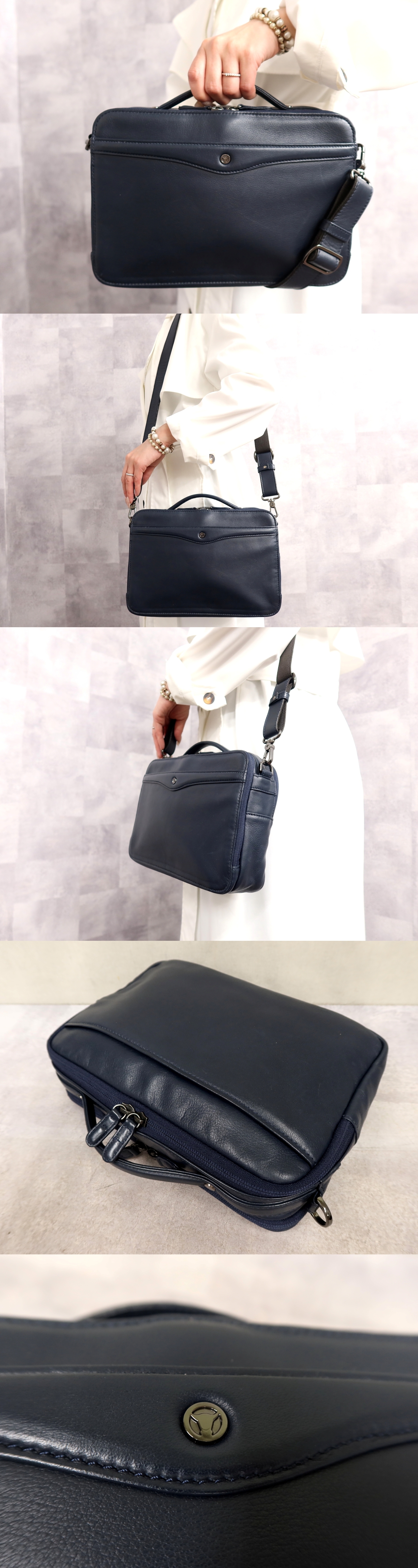 ●超美品●OFFERMANN オファーマン●メンズ●フレート●カーフ レザー 本革●2way ハンド バッグ●ネイビー●シルバー金具●収納●Js66602 收藏