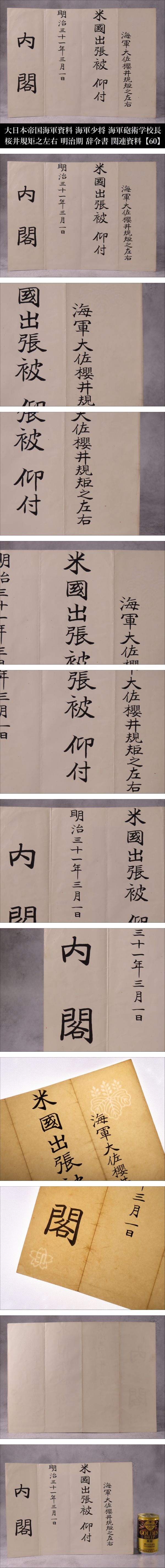 【ONES】大日本帝国海軍資料 海軍少佐 海軍砲術学校長 桜井規矩之左右 明治期 辞令書 関連資料 内閣 明治三十一年三月一日 【60】 收藏