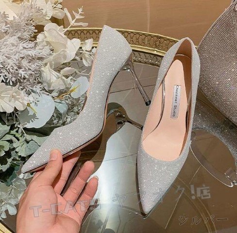 ☆新品【高品質】ハイヒールシューズ オフィス ピンヒール とんがりトゥ シンプル シルバー 23~25.5cm サイズ選択可 收藏
