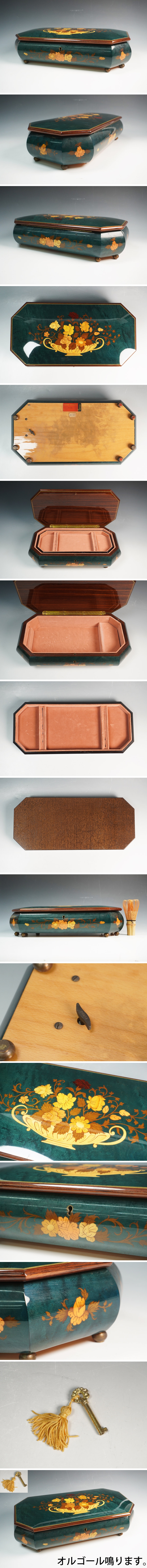 REUGE リージュ オルゴール 宝石箱 アクセサリーケース フラワーブーケ 緑色 鍵付き 結婚行進曲 保証品 ◆12199RY 收藏