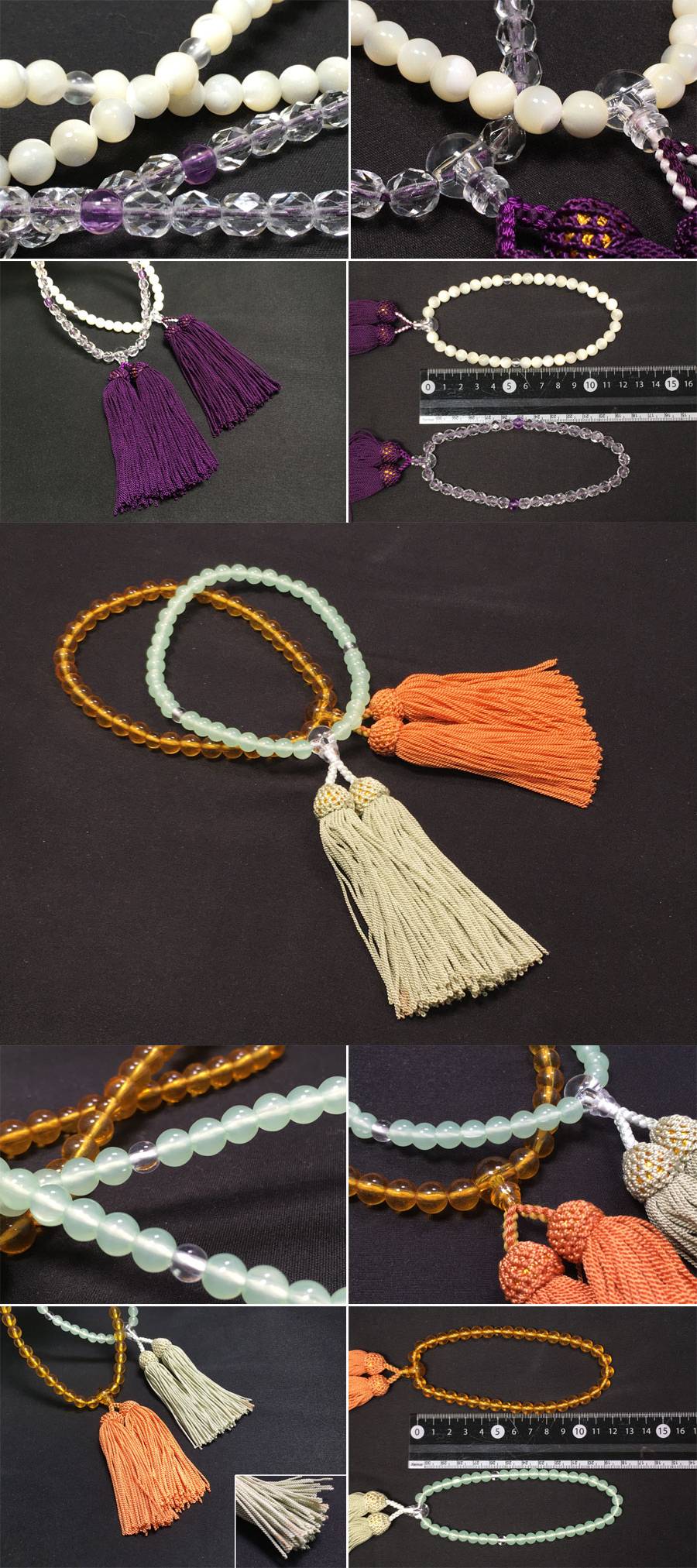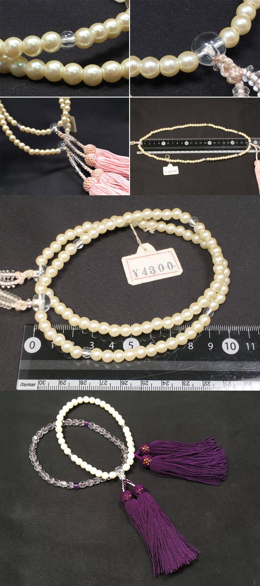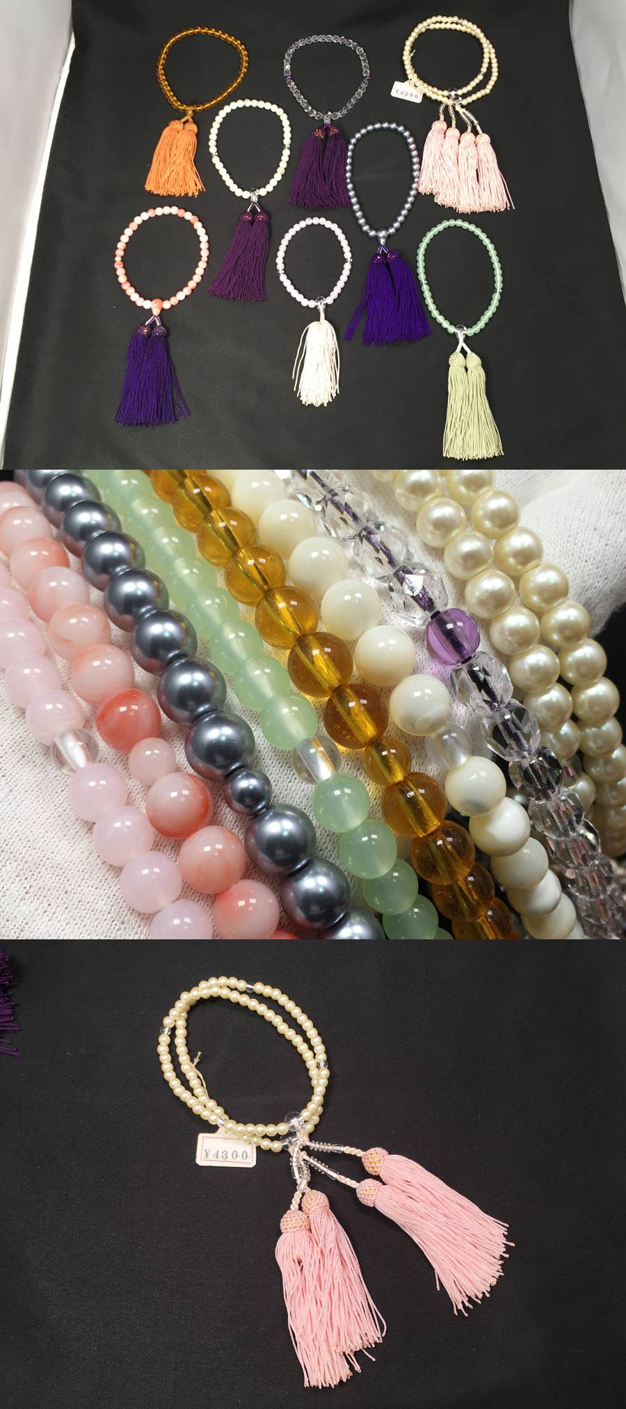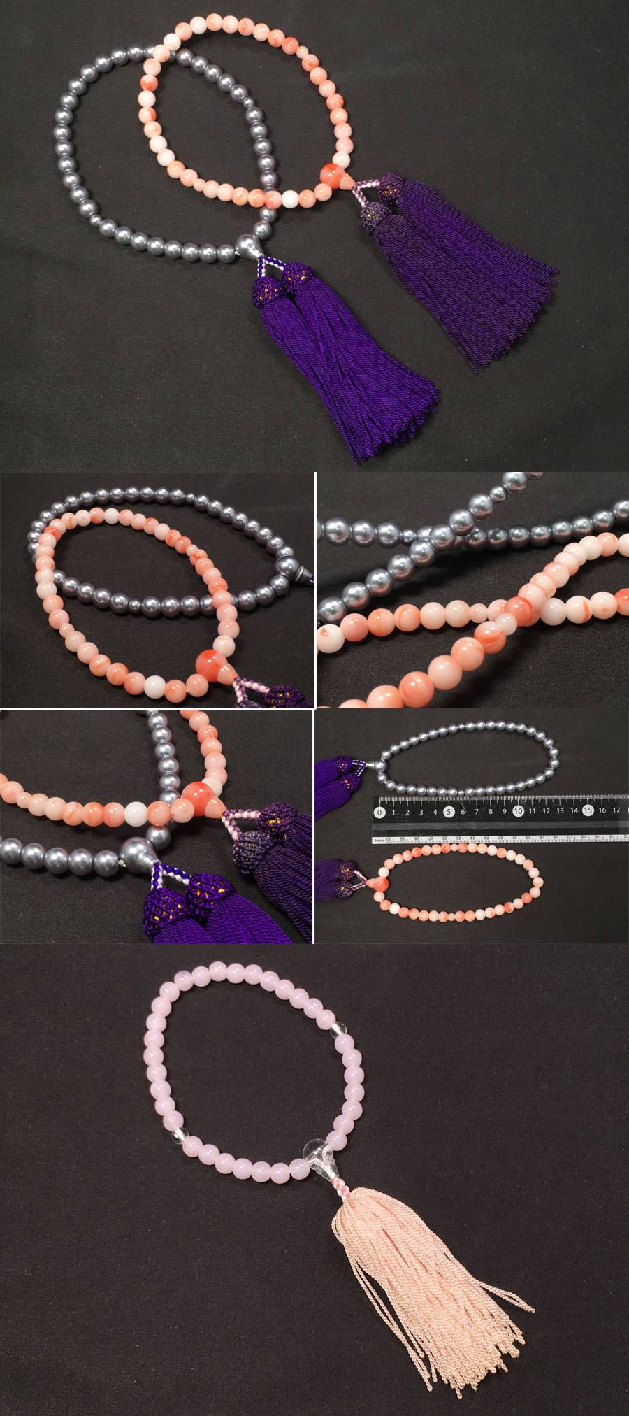 ◆おまとめ8点 御念珠 天然石 珊瑚 水晶 パール 琥珀 人絹房 約21cm~約52cm 総重量約199.8g 数珠 値札付1点有り レディース 子供用 收藏