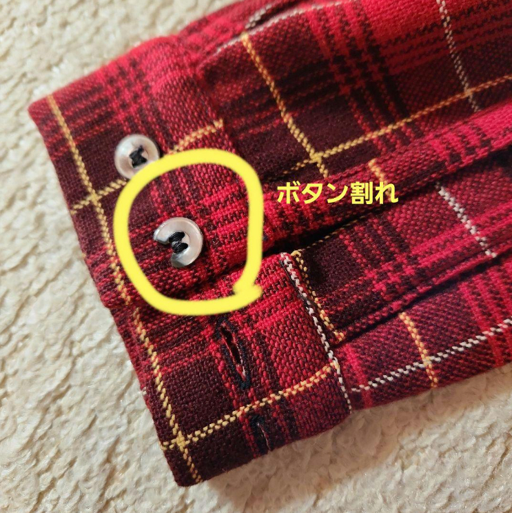 右袖ボタンに割れがあります。 左襟に小穴があります。