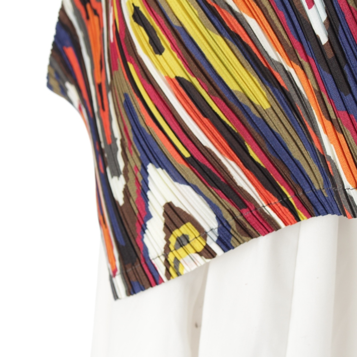プリーツプリーズ イッセイミヤケ 19SS BOUNCE SHIRT 斜めプリーツ 平面 木目 抽象柄 トップス PP91-JK721 マルチカラー 3【中古】 收藏