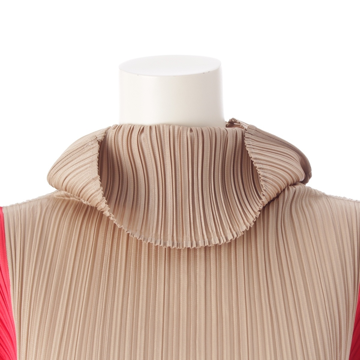 イッセイミヤケ 21年 タートルネック バイカラー ロング ワンピース PP13-JH514 ベージュ レッド マルチカラー 4【中古】 收藏