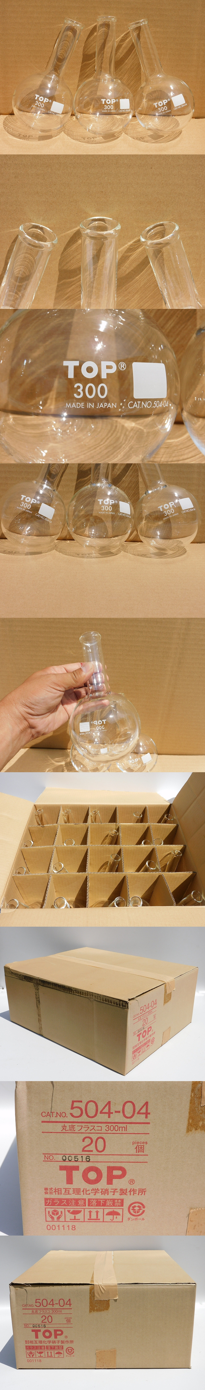 【e2572/新品20個入り/送料無料】相互理化学硝子 TOP 丸底フラスコ 504-04 300ml ガラスビン 研究備品 日本製 激安 お買い得 未使用 大量 收藏