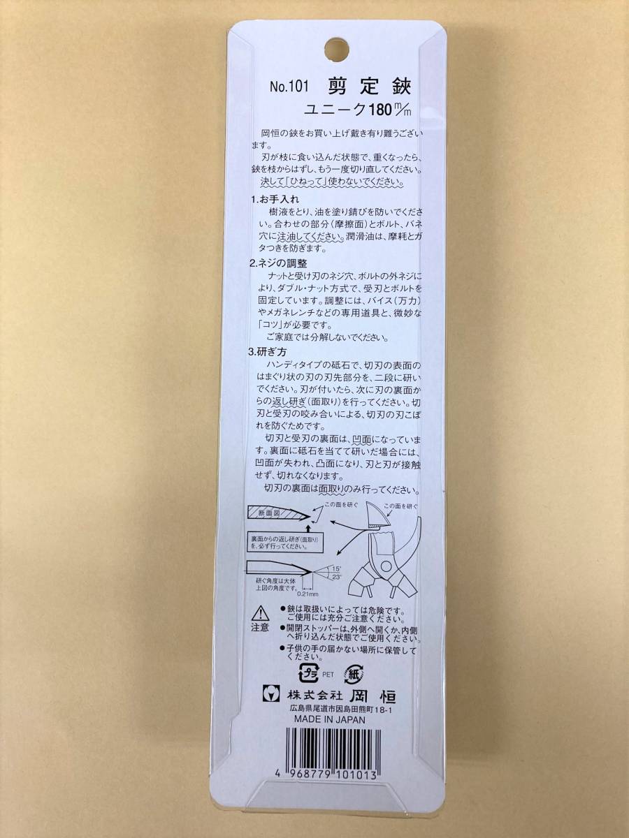未使用 #730-BP■ 岡恒 剪定鋏 ユニーク 180ミリ No.101 收藏