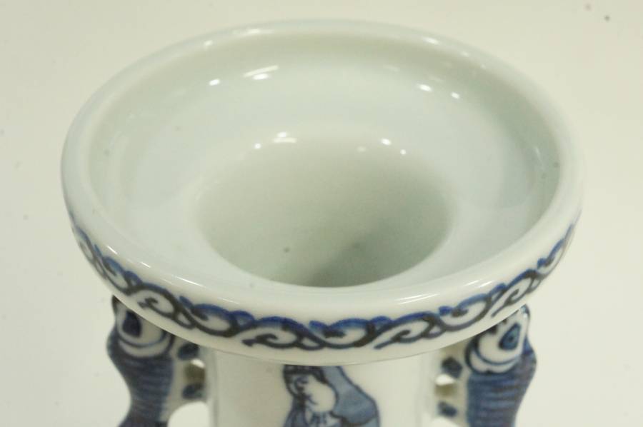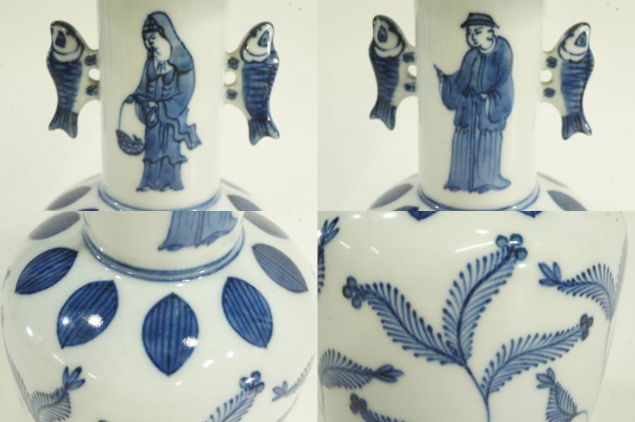 ●京焼 三代三浦竹軒 竹泉 青華磁鯉耳花瓶 染付 花生 花器 共箱 高さ約20.5cm 状態良好 茶道具