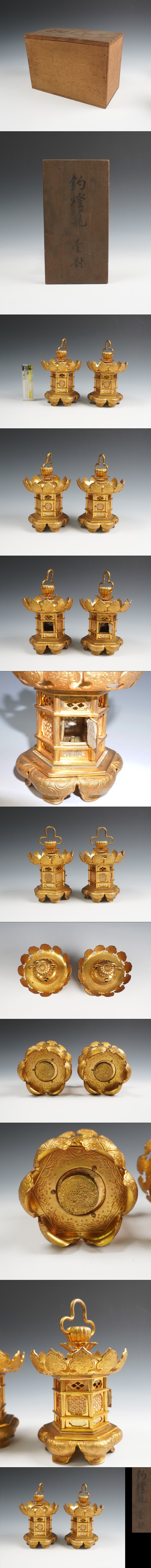 釣燈籠 一対 金灯籠 吊灯籠 用心箱 ◆12651IY 收藏
