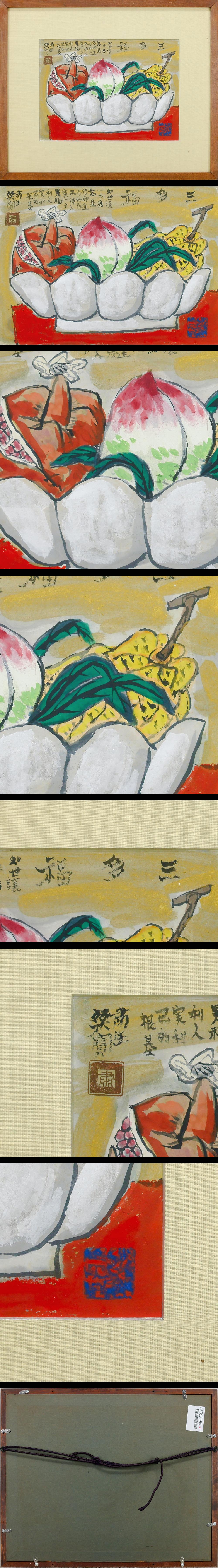 【真作】【WISH】粛粲寶「三多福」日本画 金泥仕様 ◆縁起三果の彩り静物 〇異色画家 個展三越他 師:黒田清輝/小林古径 #25092980 收藏