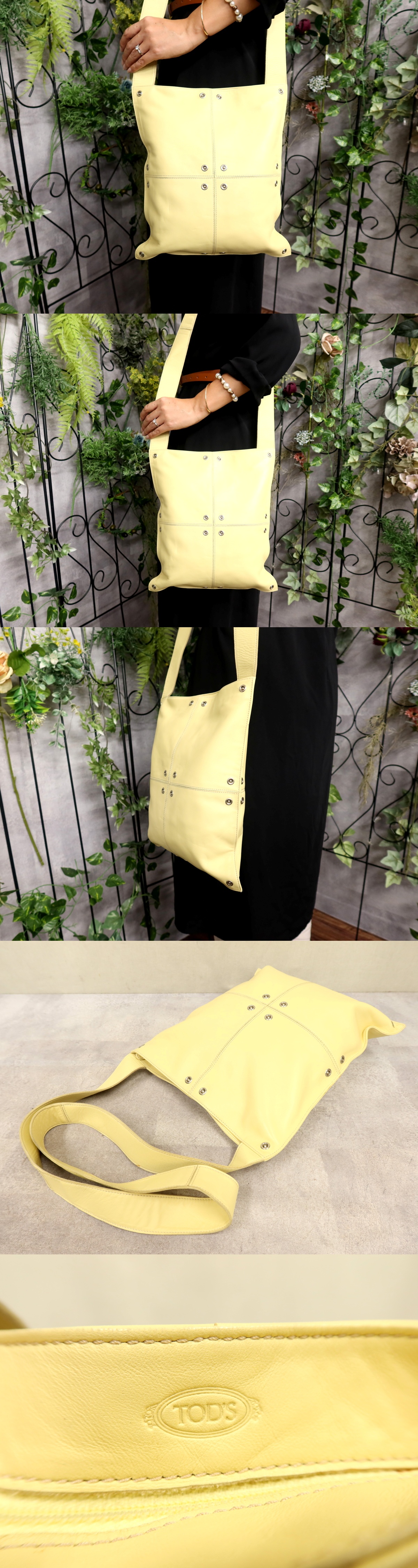美品●TODS トッズ●ナッパ レザー 本革●ショルダー バッグ●クリームイエロー●シルバー金具●斜め掛け●B5 収納●ロゴ型押し●Js61169 收藏