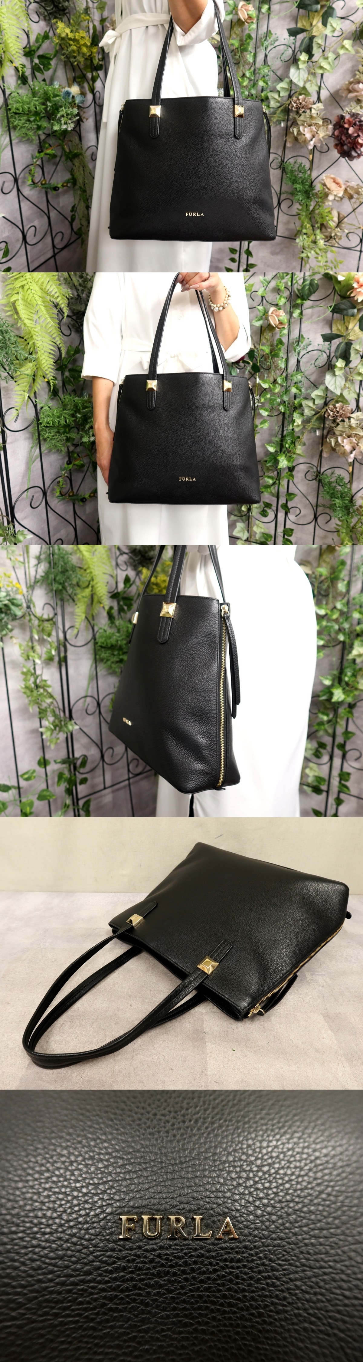 ●未使用 保管品●FURLA フルラ●キム●サイドジップ●カーフ レザー 本革●トート バッグ●黒●ゴールド金具●B5 収納 かばん●Js61206 收藏