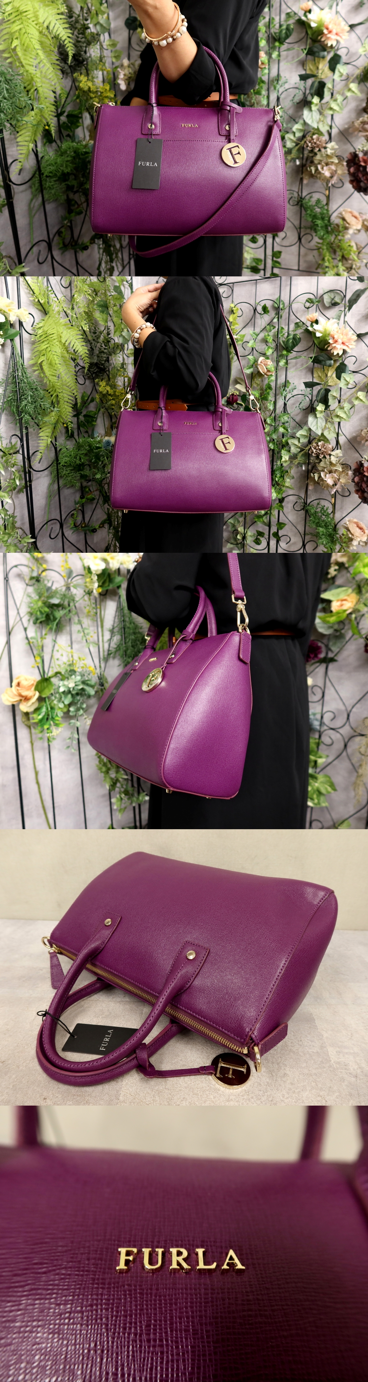 ●超美品●新品同様●FURLA フルラ●LINDA リンダ●カーフ レザー 本革●2way トート バッグ●パープル●ゴールド金具●B5 かばん●Js61155 收藏