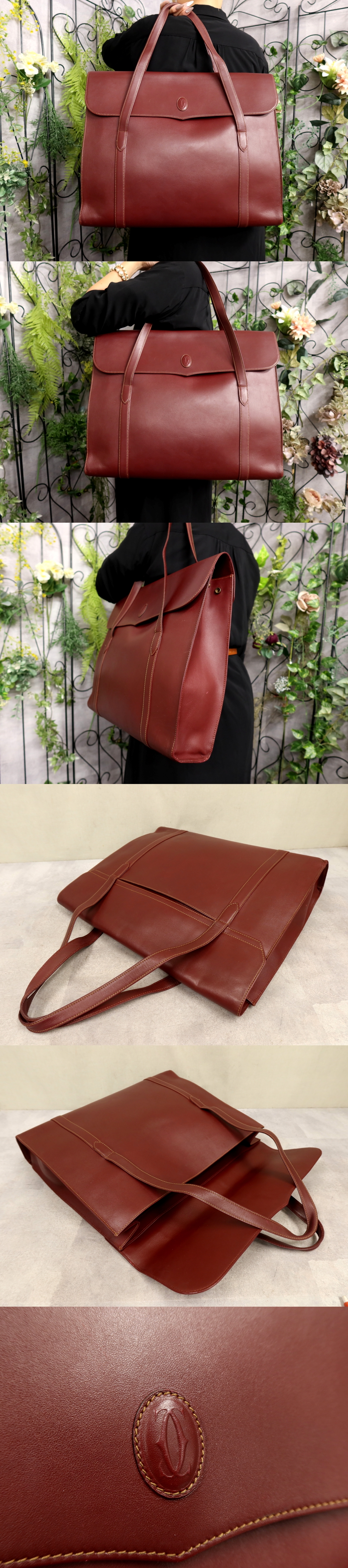 超美品●Cartier カルティエ●メンズ●マスト●カーフ レザー 本革●トート ハンド バッグ●ボルドー●ゴールド金具●A4 ビジネス●Js61090 收藏