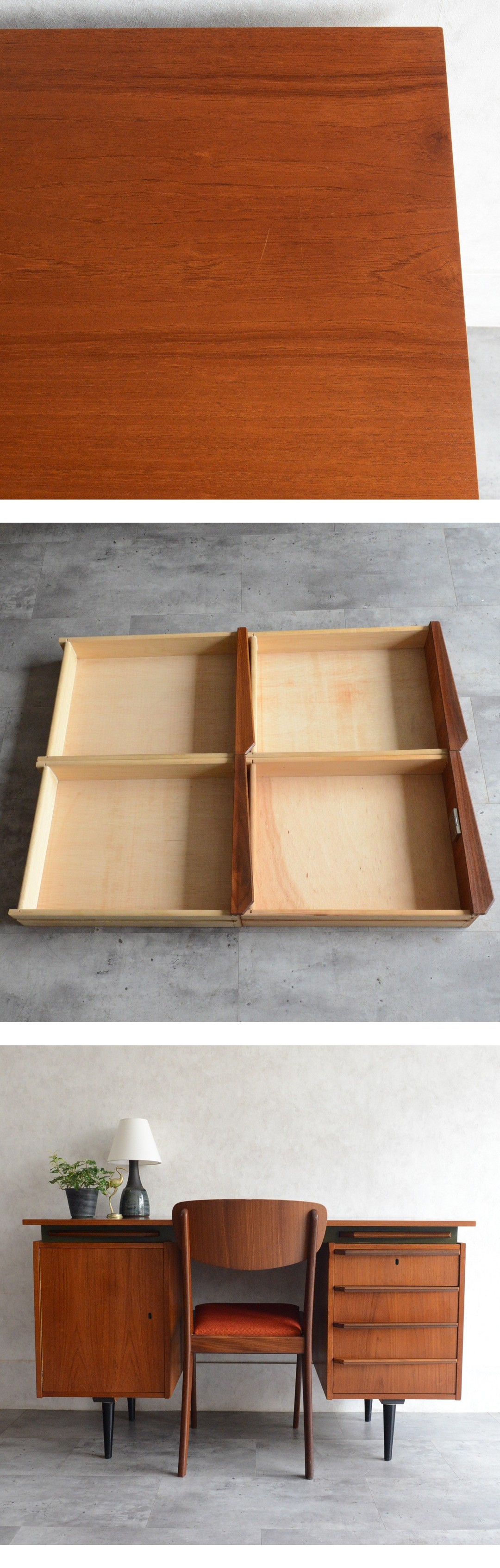 北欧ヴィンテージ ミッドセンチュリー チーク デスク 鍵付 ミッドセンチュリー 書斎机 学習机 パソコンデスク 両袖デスク キャビネット収納 收藏