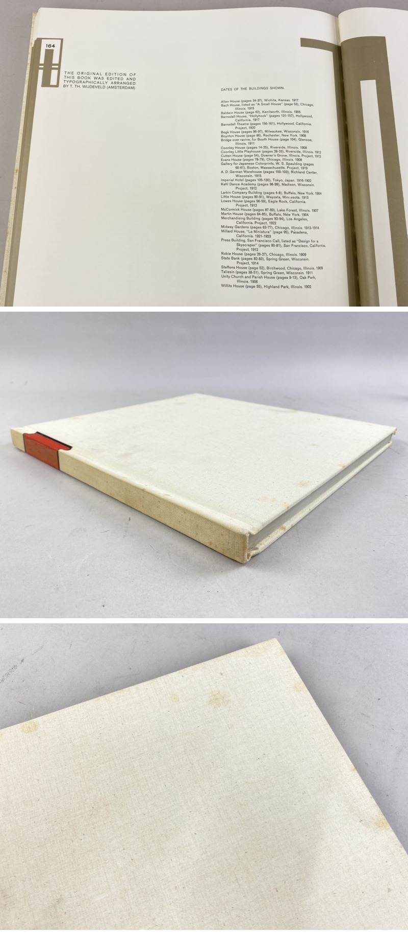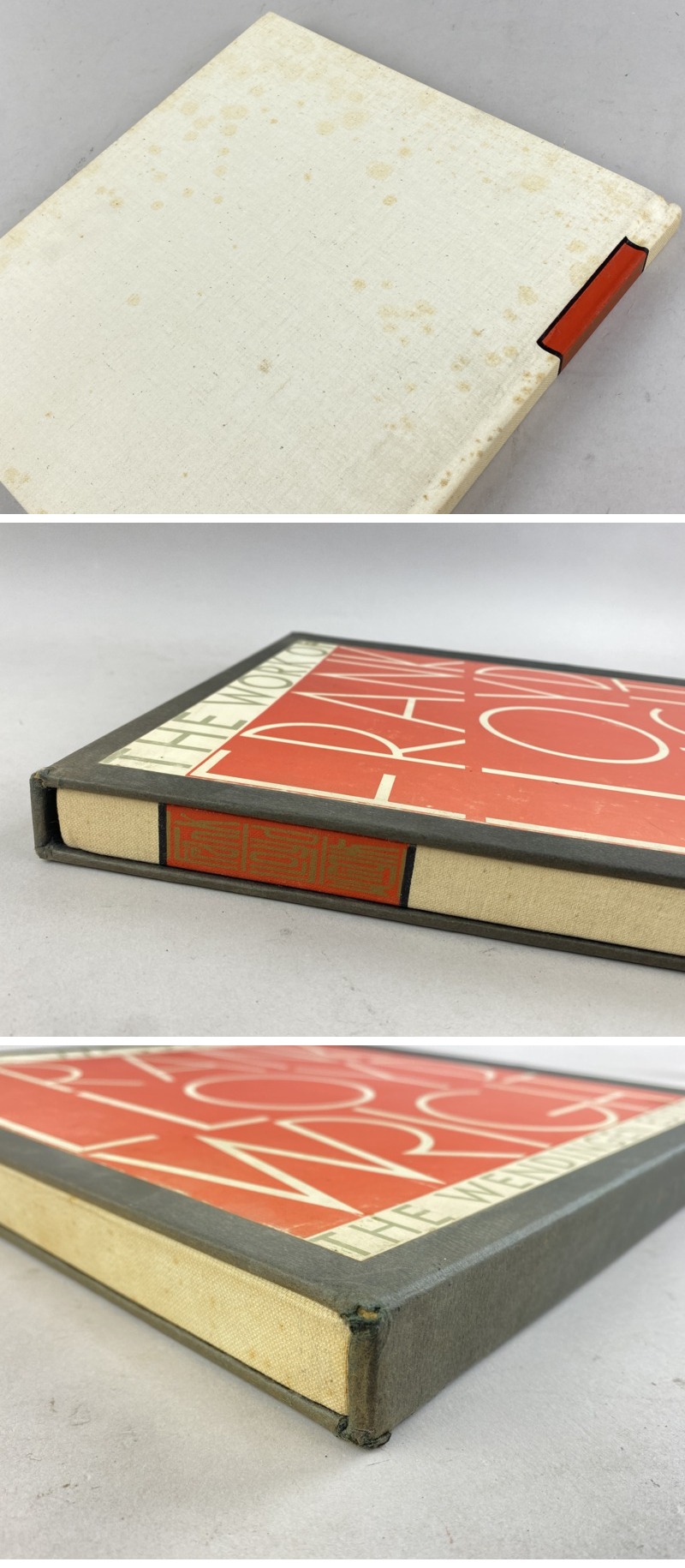◇商品情報◇ | 当店の商品をご覧いただきありがとうございます!! 洋書 The Work of Frank Lloyd Wright ウェンディンゲン版 フランク・ロイド・ライト 建築 作品集 1965年 になります。 経年保管品のため、擦れ・うす汚れ・外装にシミ等ございます。 内側にも多少の薄汚れなどがございますが、ページの閲覧には問題ございません。 ケースにも擦れ、汚れ、角に破れなどがございます。 状態などは画像を参考の上、ご検討をよろしくお願い致します。 ※目視チェックをしていますが、表記漏れや見落としや細かな擦れ・薄汚れなどがある場合もございますので予め画像をご確認の上でご入札をお願いいたします。 商品のトップ画像端に写っている茶筅はサイズ比較用の備品ですので付属はしません | ||||||||||||||||||||||||||||||