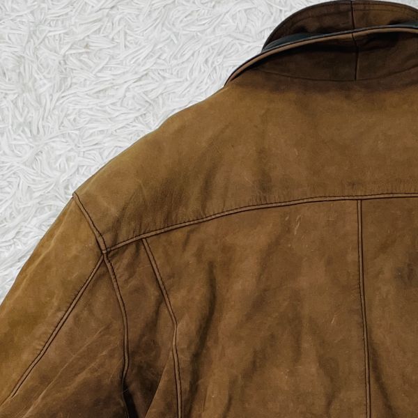 柔らかく厚みのある牛革を使用し、経年によるヴィンテージ感のある風合いが魅力。 肩幅 約58cm 裏地はナイロン50%、アセテート50%、中綿はポリエステル100%。 |