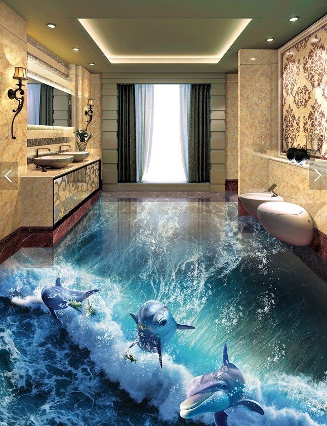 | C629 巨大 3D フロアマット 2m*2m* 海 水族館 風景 景色 リフォーム リメイク  防音 断熱 滑り止めシート 床 壁 天井 はがせるシール