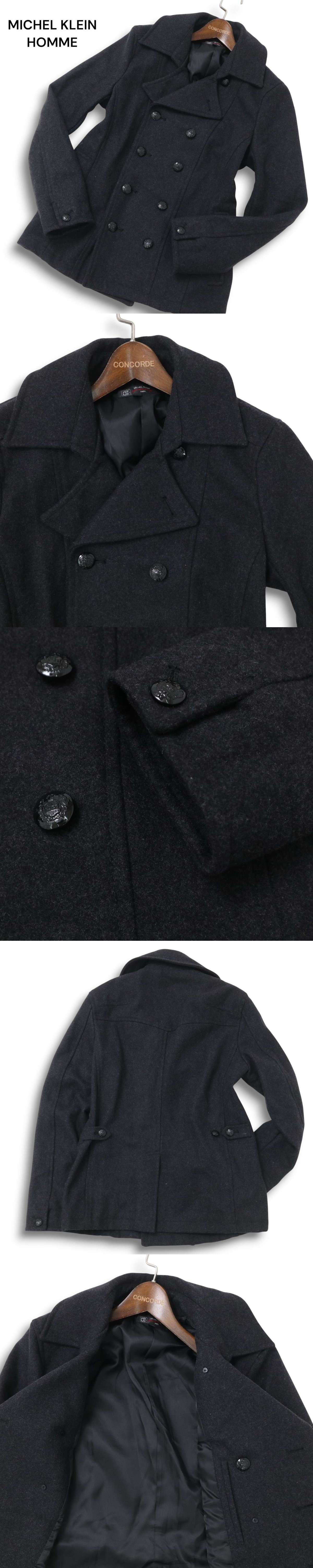 MICHEL KLEIN HOMME ミッシェルクラン オム 秋冬★ ウール混 メルトン Pコート Sz.46 メンズ 收藏