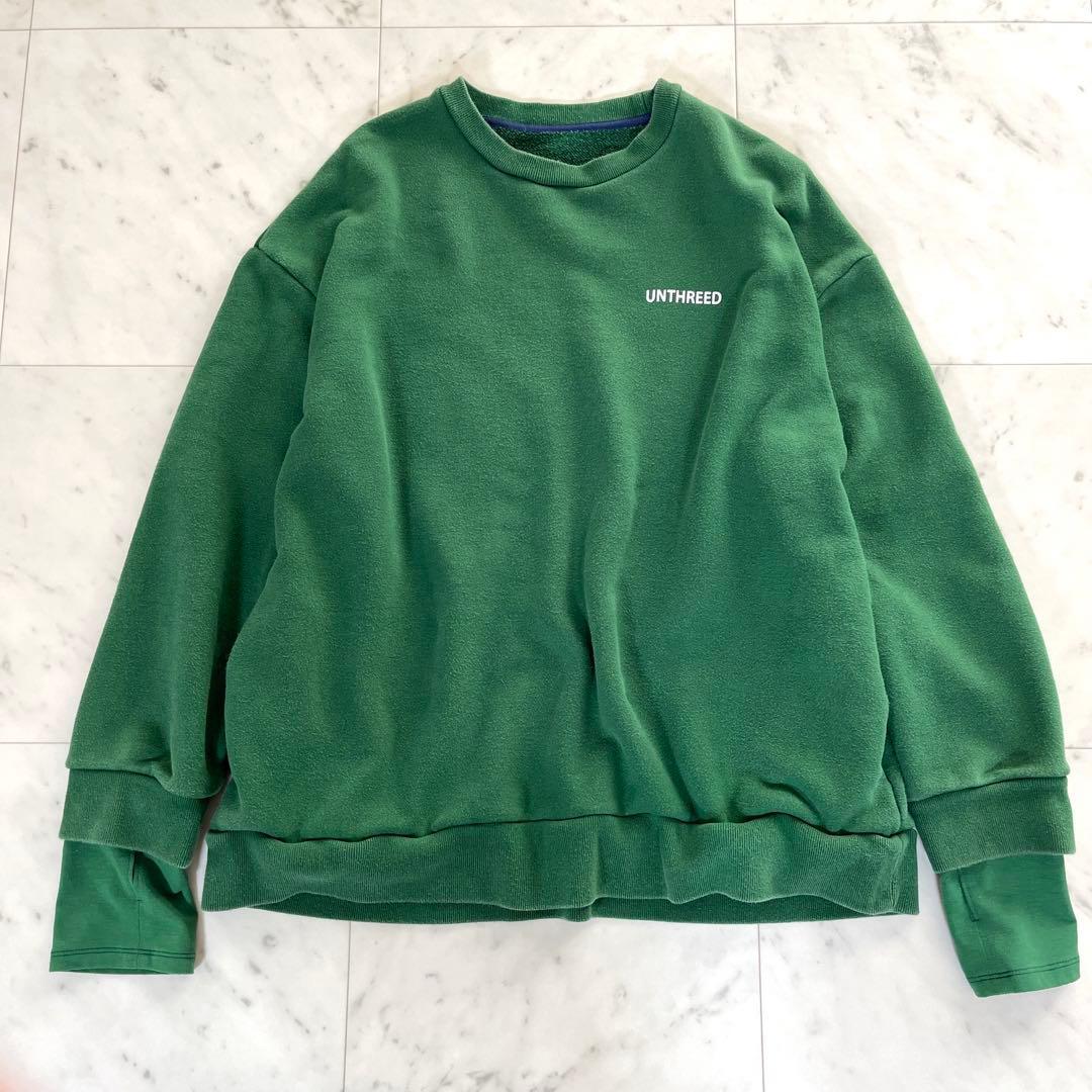 訳あり UN3D. アンスリード スウェット トレーナー レイヤード オーバーサイズ 日本製 ロゴ グリーン 緑 收藏