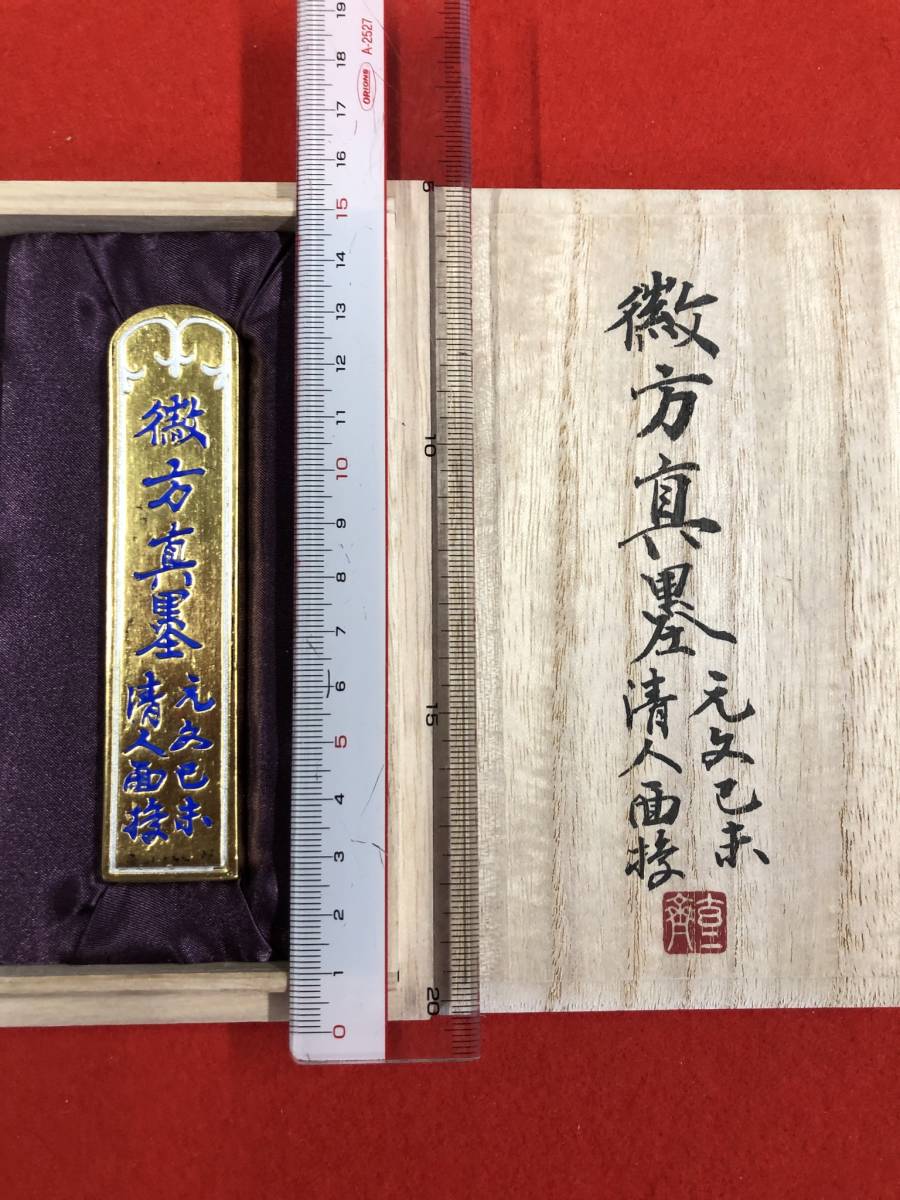 古梅園 書道墨2008年製造『徽方真墨』紅花墨の原型 漆墨・極上油煙墨 金巻稀少墨 48.5g 未使用・新品保管品 收藏