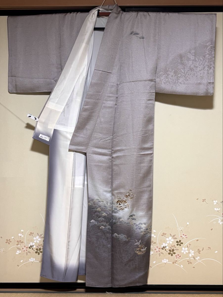 訪問着 手描友禅 正絹 手刺繍ちりめん 中古 グレー sk067 收藏